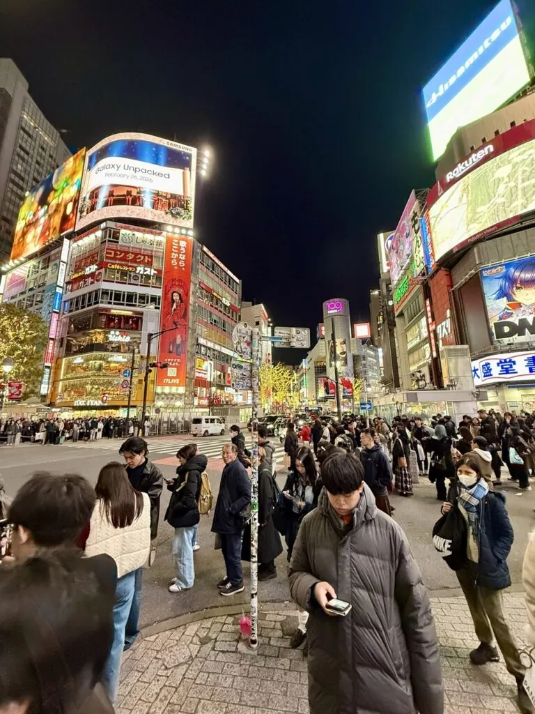 We stepped out into Shibuya Crossing at dusk, which was perfect timing. You see it in daylight, and then within minutes the lights start to take over. Screens glow. Neon reflects off everything. The whole place shifts gears as the sun goes down.